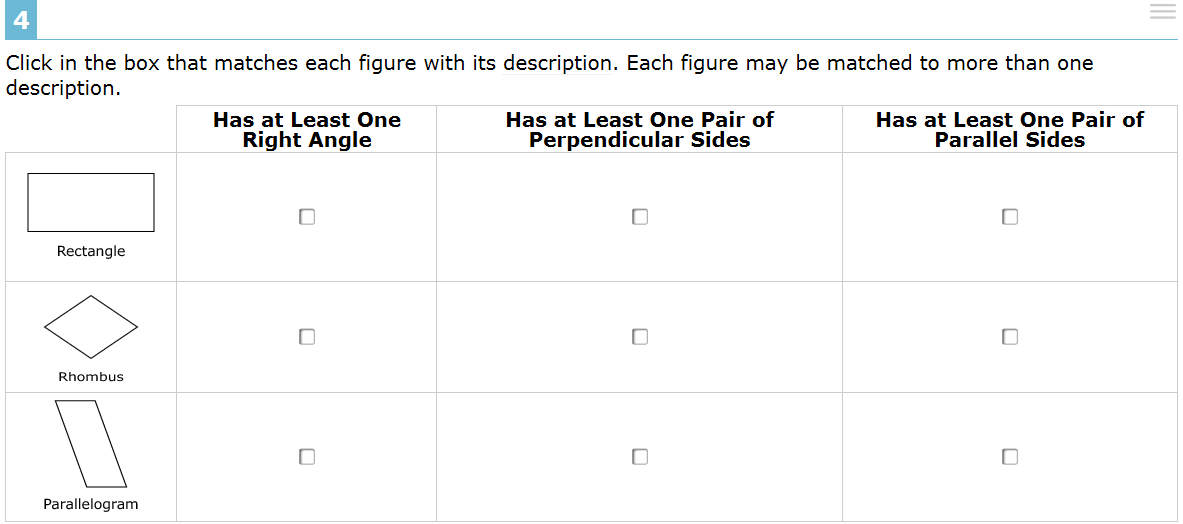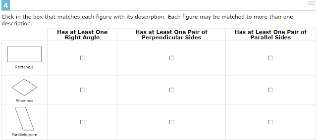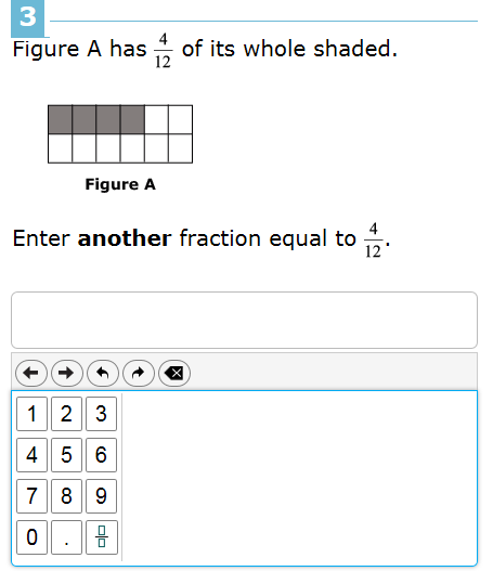 From the Smarter Balanced Assessments, a Common Core-inspired, standardized test consortium now consisting of about 12 states: the next three problems on the sample 4th grade practice test.